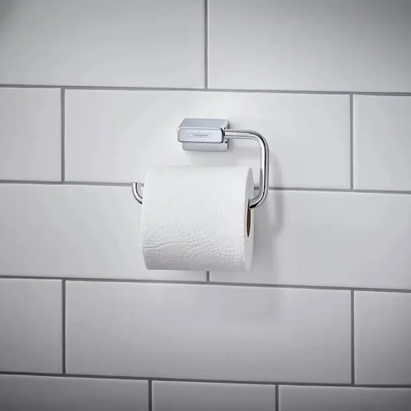 Držač toalet papira bez poklopca iz serije Hansgrohe AddStoris u hrom završnoj obradi. Jednostavna zidna montaža, savršeno se kombinuje sa ostalim elementima AddStoris kolekcije.