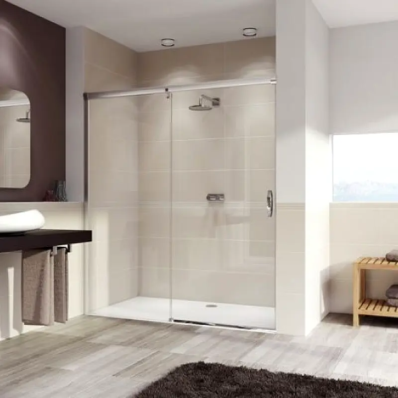 Aura Četvrtasta kabina, Klizna vrata, jedan panel sa fiksnim segmentom, levo fiksiranje Mat profil čisto Anti-Plaque staklo, varijacija postavljanja,, soft-close, za kadicu dim. TN 1160 - 1200 mm za kadicu dim. TS 1190 - 1230 mm 1900 mm