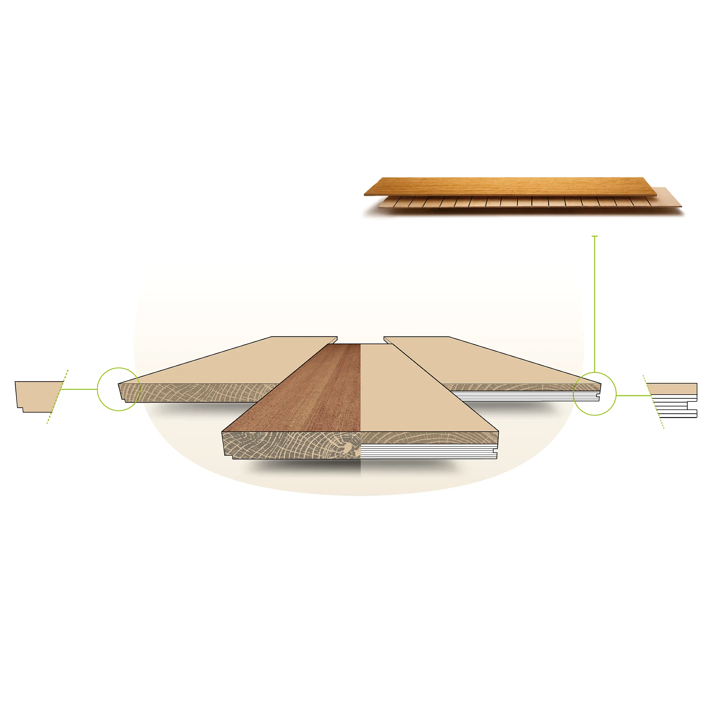 Dobija se savršena stabilnost, višeslojna struktura najvišeg standarda, sertifikovan za podno grejanje, optimalna provodljivost toplote, precizno kontrolisana vlažnost drveta.
