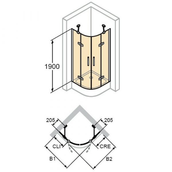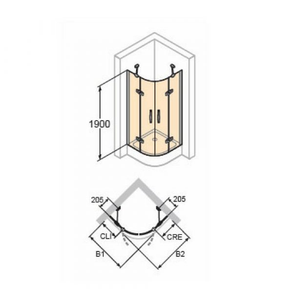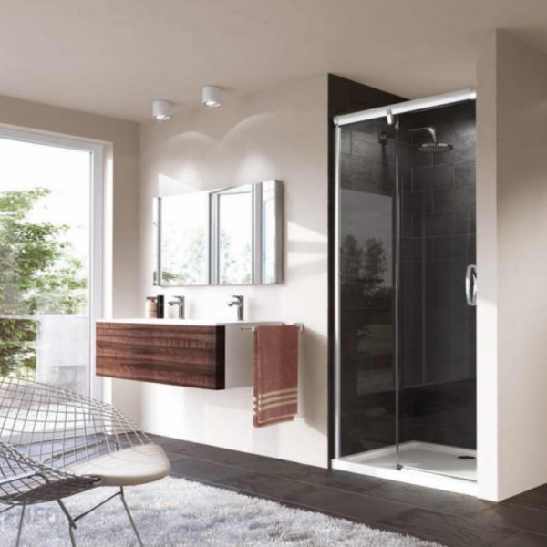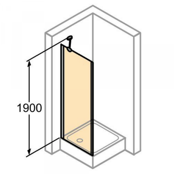 Aura Četvrtasta tuš kabina, klizna vrata, jedan panel sa fiksnim segmentom, desno fiksiranje i desno otvaranje, visoki sjaj profil, čisto Anti-Plaque staklo za kadicu dim. TN 1060 – 1100 mm za kadicu dim. TS 1090 – 1130 mm 1900 mm
