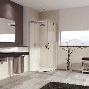 Aura četvrtasta tuš kabina za Vaše kupatilo dimenzija 120×190 cm, klizna vrata, sa otvaranjem na levo i fiksnim panelom. Čisto Anti-Plaque staklo i beli profil. Mogućnost izrade tuš kabine po meri.