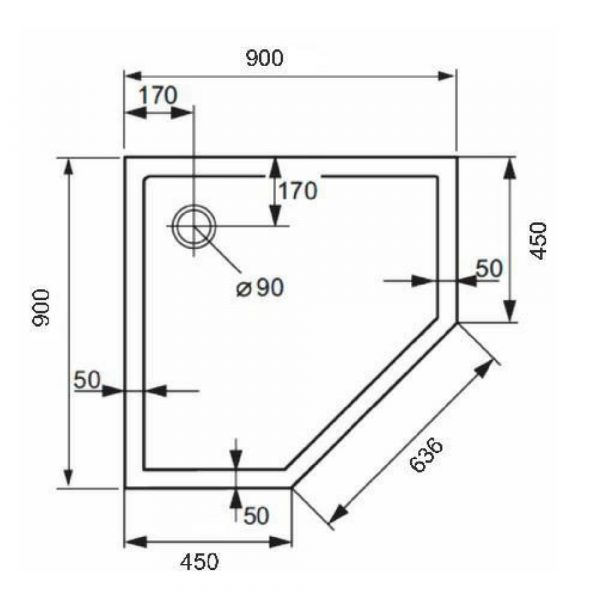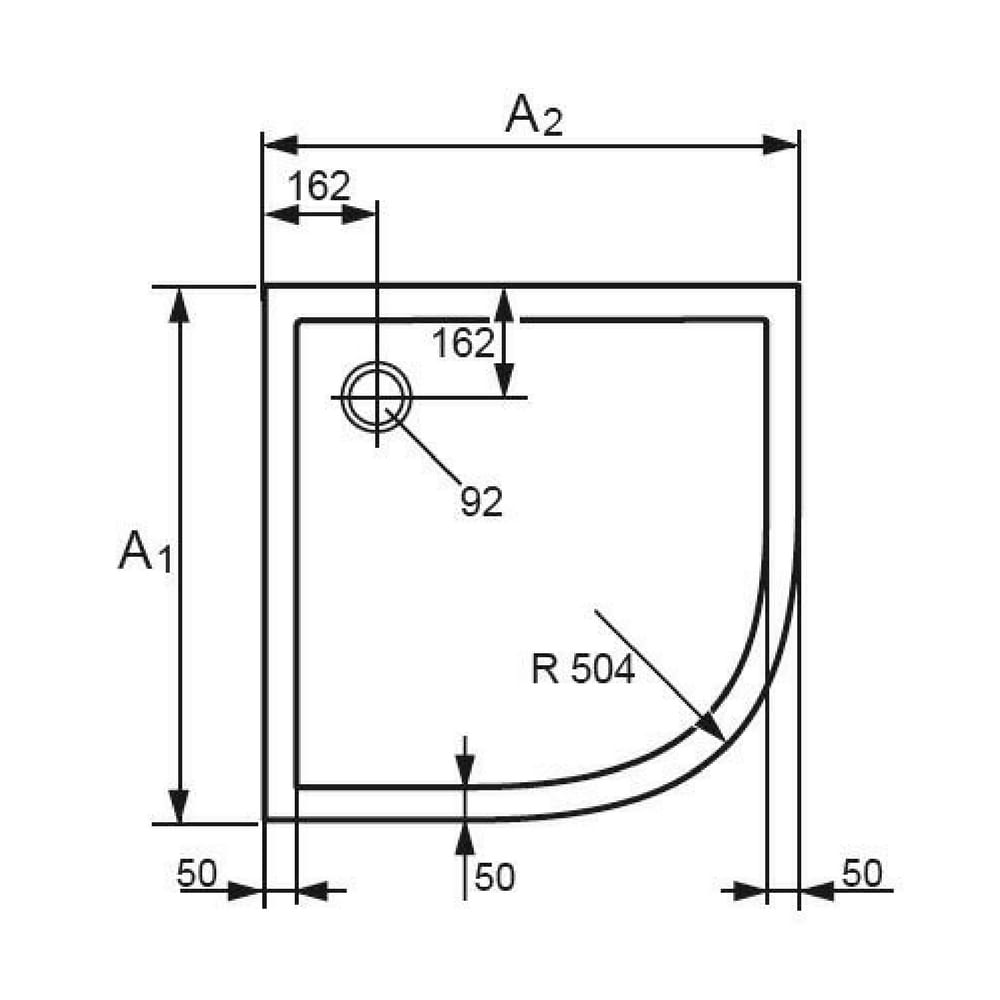 Purano Polukružna kadica 1000×1000 mm bele boje A1 1000 mm A2 1000 mm