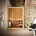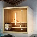 Sauna dimenzija 210x135 cm i visine 198 cm. Spoljašnost, unutrašnjost kao i nameštaj napravljeni su od posebne vrste četinara Hemlock koje se još i naziva drvo za saune. Hoshi sauna dolazi sa sledećom opremom: peć sa integrisanim komandama, kamenjem i drvenim poklopcem, gornja i donja klupa sa integrisanim naslonom za glavu,podne ploče, peščani sat, higrometar, termometar; swing vrata od prozirnog kaljenog stakla debljine 8 mm sa hromiranim šarkama i drvenom unutrašnjom i spoljašnjom ručkom; on/off, kontrola i regulacija vremena i temperature, napon 230 V, apsorbovana snaga 4.5 kW.