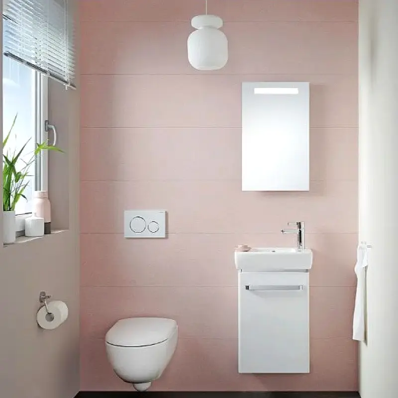 Bitno: ostavite revizioni otvor (24×16 cm) na zidu iza tipke za servis vodokotlića (zamena membrane, popravka curenja) — Geberit i TECE potvrđuju da se kompletni mehanizam vadi kroz tipku, ali za sigurnost je dobro ostaviti revizioni panel.